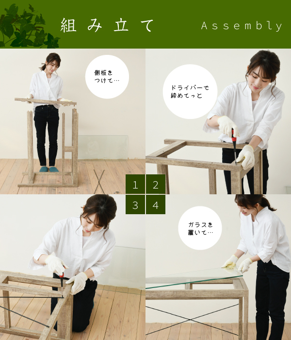グリーンインテリア デスク 幅90 ガラス 古材 古木 インテリア 奥行45 グリーン 観葉植物 シャビー 植物 棚 ラック おしゃれ 木製 机 pc リビング