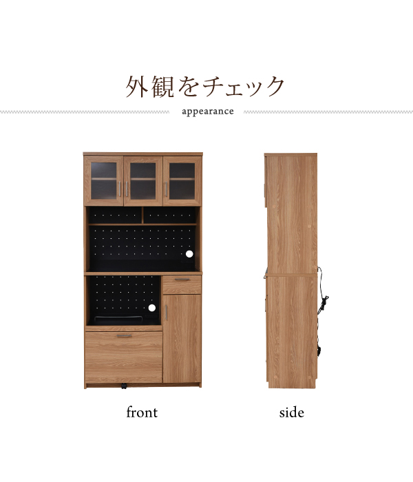 大型 レンジ台 レンジ棚 レンジラック 食器棚 北欧 キッチン収納 スライド棚 付き幅 90 高さ 180 収納 棚 ラック ガラス扉 おしゃれ