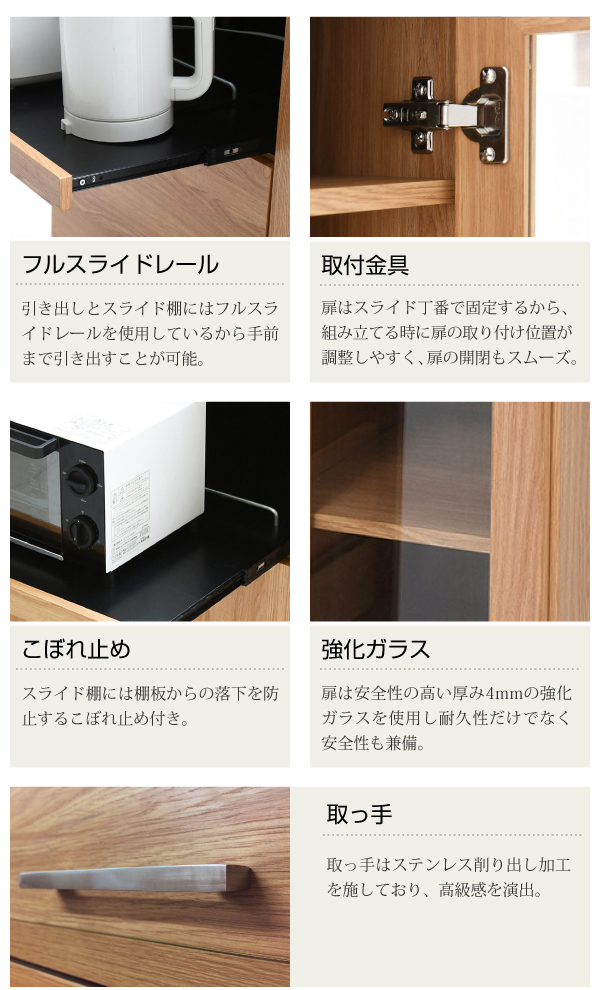 収納抜群のコンパクトカウンター。見た目以上に入るから、食器や家電、食品などの収納がこれ一台に収納可能なキッチンカウンター。