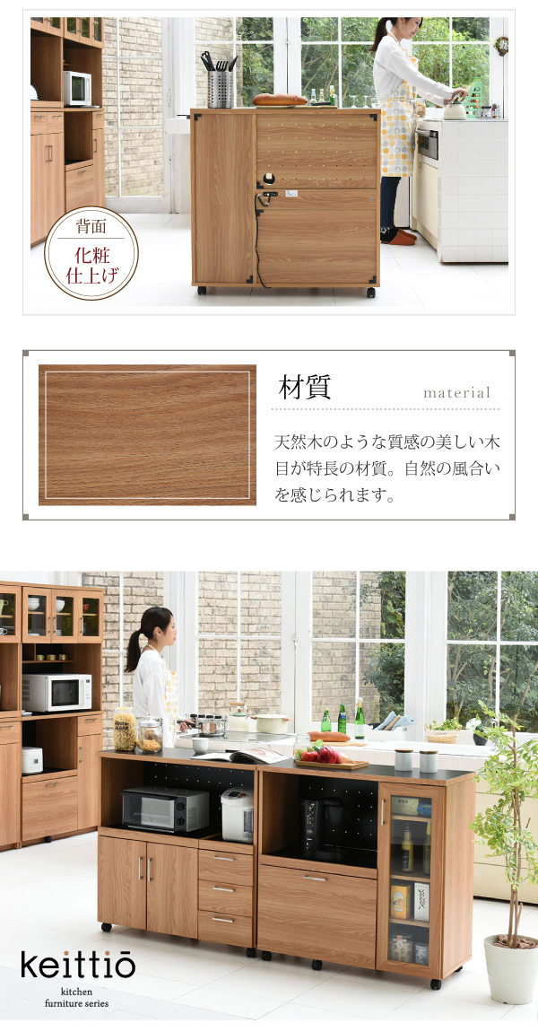 キッチンカウンター キッチンボード 90 幅 コンセント付き レンジ台 キッチン収納 食器棚 カウンター キャスター付き