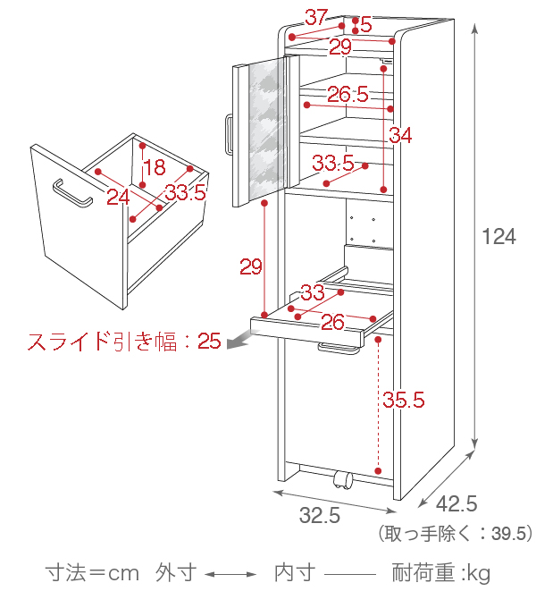 隙間に最適な、幅32.5cm、高さ124cmのロータイプスリムラック。