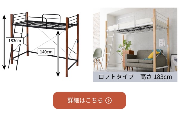 温かみのある天然木とクールなスチールのコントラストがおしゃれな、ちょっと低めのロフトベッド。高すぎないのでどんなお部屋にもおすすめできます。ベッドの下のスペースは収納に使っても、ロースタイルな生活の一部にしても。お部屋の雰囲気にあわせて選べる4カラー展開が嬉しい!