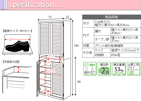 《SGT-0102SET》ルーバーシューズボックス 幅75 (2個組) | 家具の仕入れ、卸売、ドロップシッピング|通販Labo(ラボ)