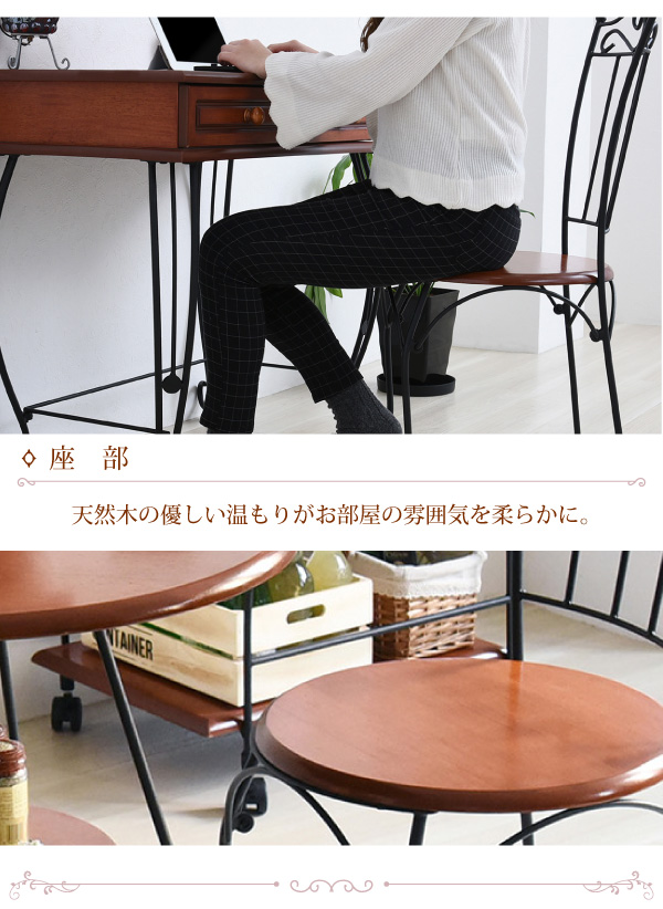 チェア単体でも、デスクやダイニングテーブルとシリーズで合わせても、お部屋のアクセントになる可愛いデザイン。背もたれの曲線が優雅で美しく、甘くなりすぎないのでシンプルなお部屋にもぴったり。