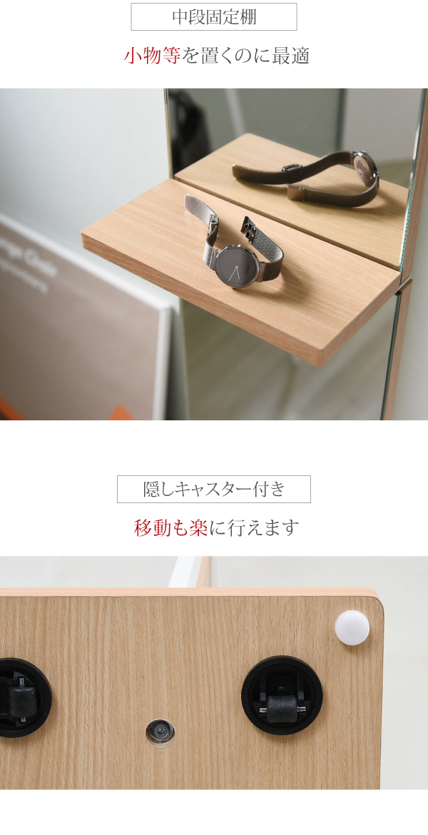 Ritaシリーズは熱や水に強く、傷がつきにくいので、メンテナンスが容易です。スチールは鋭角な部分を排除し、やさしい作りになっています。ハンガーフックや簡易ハンガーバー、小物を一時的に置いておくための棚付きなので簡易収納にも身だしなみを整えるのにも便利です。隠しキャスター付なので移動も楽々。
