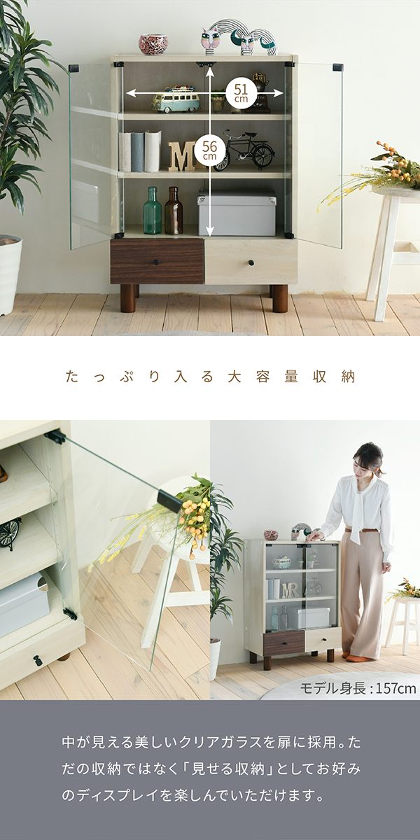 キャビネット リビング ガラス 幅60 奥行30 高さ85 組み合わせ リビング 収納 木製 ディスプレイ 収納棚 ナチュラル ワンルーム 一人暮らし コンパクト