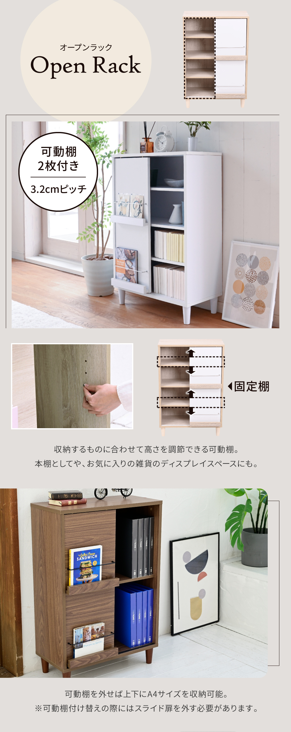 ディスプレイラック 幅 60 2段 扉付き キャビネット 本棚 扉付き 引き戸 北欧 リビング収納 脚付き | 家具の仕入れ、卸売、ドロップシッピング|通販Labo(ラボ)