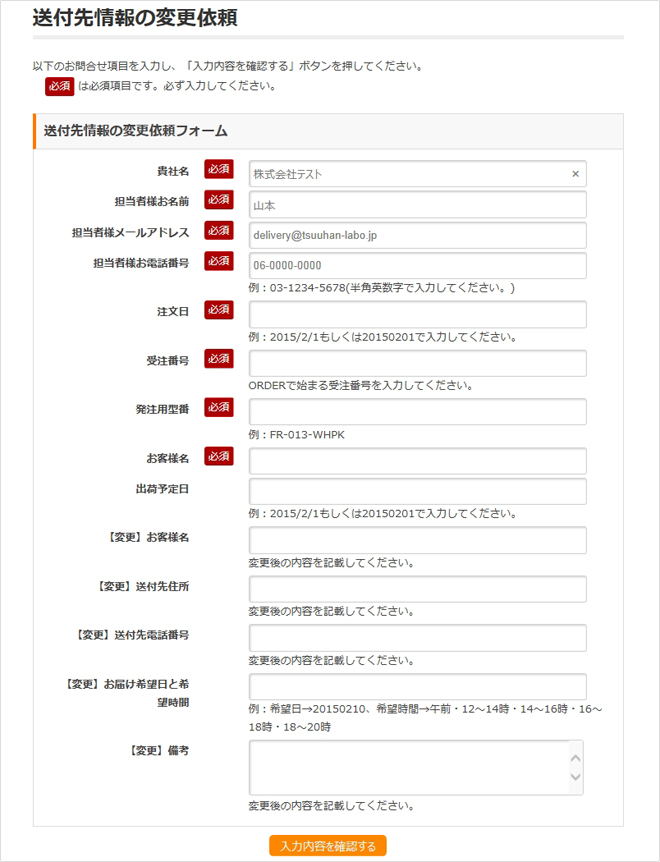 貴社名・担当者様お名前・担当者様メールアドレス・担当者様お電話番号は、会員情報が自動で入力されています。