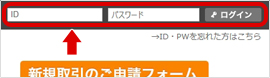サイトの一番上に表示されている「ID(ご登録時のメールアドレス)」と「パスワード」をご入力いただき、「ログイン」をクリックします。